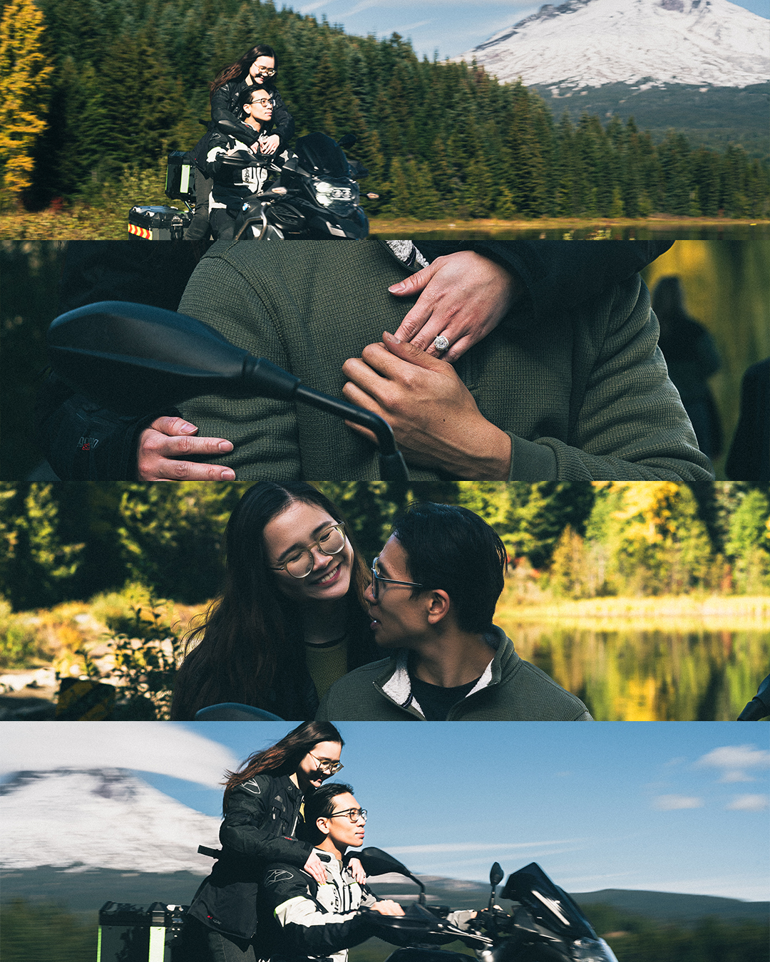 When my client told me that they were planning to arrive on a motorcycle, I instantly thought that it would be so great to include it in the proposal pictures. Being such a big part of the story, we definitely had to stage a few shots with the motorcycle after the proposal moment. Working with props like this definitely makes the whole storyline more cinematic and personal. In my work, I strive to have a good balance of a few staged, timeless shots in combination with candid, movie-like frames.